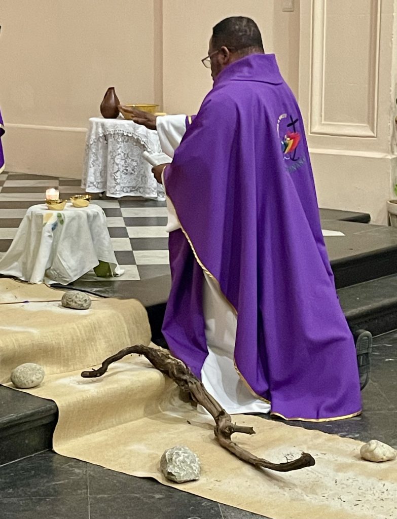 Dans son homélie, le père Barnabé a rappelé le sens véritable du Carême. S’appuyant sur l’Évangile du jour, il a souligné que Jésus nous met en garde : le Carême n’est pas une compétition de ferveur, encore moins une vitrine spirituelle.