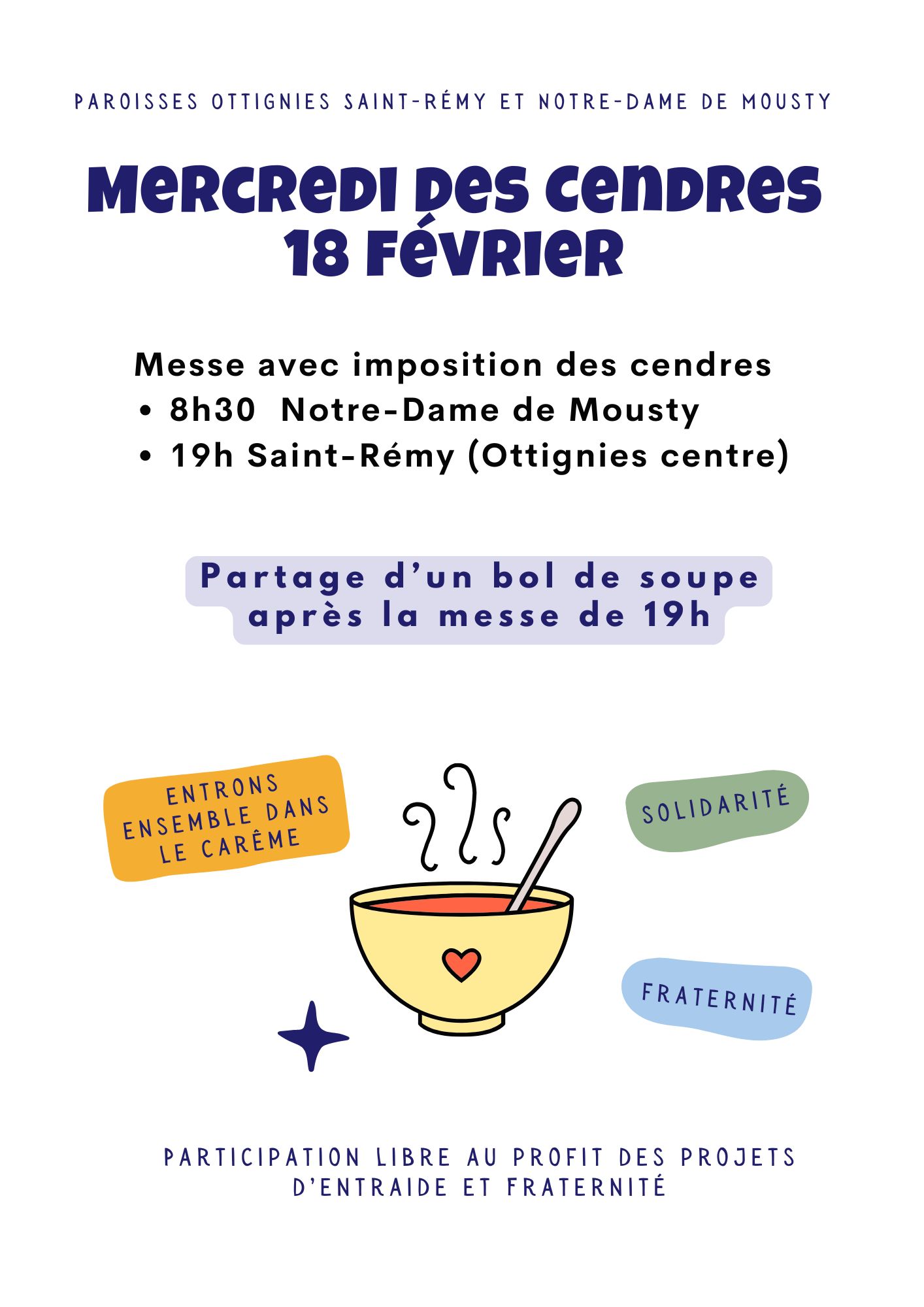 Après la célébration du soir, partage d’un bol de soupe : entrons chaleureusement et fraternellement dans ce Carême !