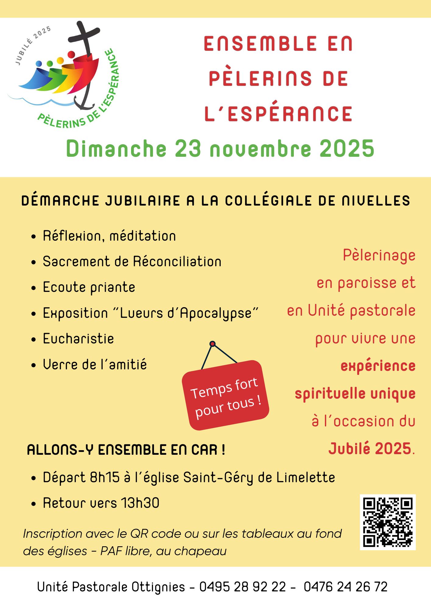 Notre paroisse avec les autres paroisses de l’UP vous invitent à une démarche jubilaire à la Collégiale de Nivelles, le dimanche 23 novembre 2025
